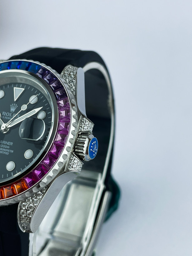 اگر به دنبال ساعتی هستید که هم درخشان باشد و هم خاص، این مدل از رولکس سابمارینر انتخابی بینظیر برای شماست. با نگینهای رنگی اتمی در دور قاب که جلوهای لوکس و چشمنواز ایجاد میکنند، این ساعت اتوماتیک مسترکپی با کیفیت بالا و طراحی نزدیک به نسخه اورجینال ساخته شده است.