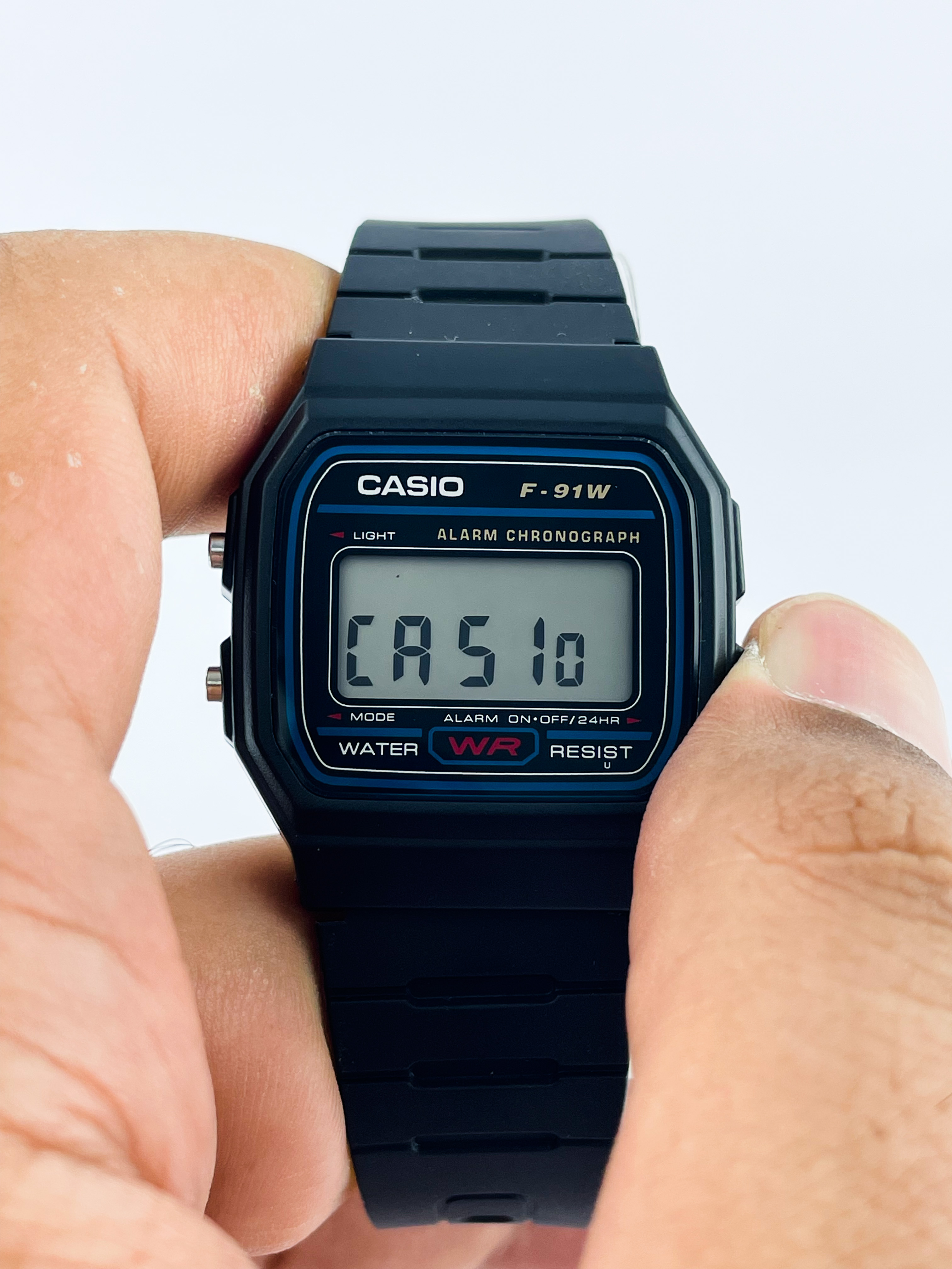F91W با طراحی ساده و جمعوجور، حالوهوای دهه ۹۰ میلادی را زنده میکند. صفحه مستطیلی با اعداد دیجیتال واضح، دکمههای فلزی در کنارهها و رنگ مشکی مات بدنه، همگی ترکیبی از سادگی، عملکرد و حس نوستالژی را ایجاد کردهاند. این ساعت برای کسانی که طراحی مینیمال را ترجیح میدهند، یک گزینه فوقالعاده است.